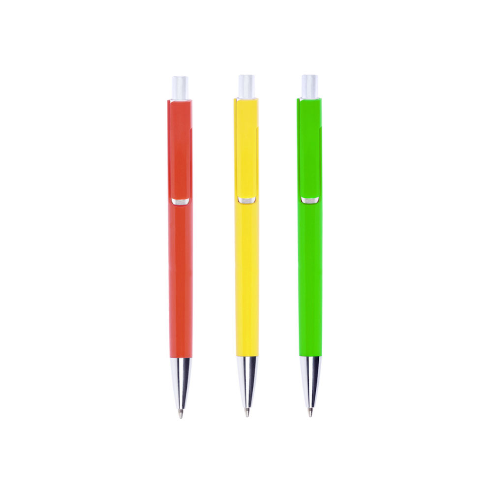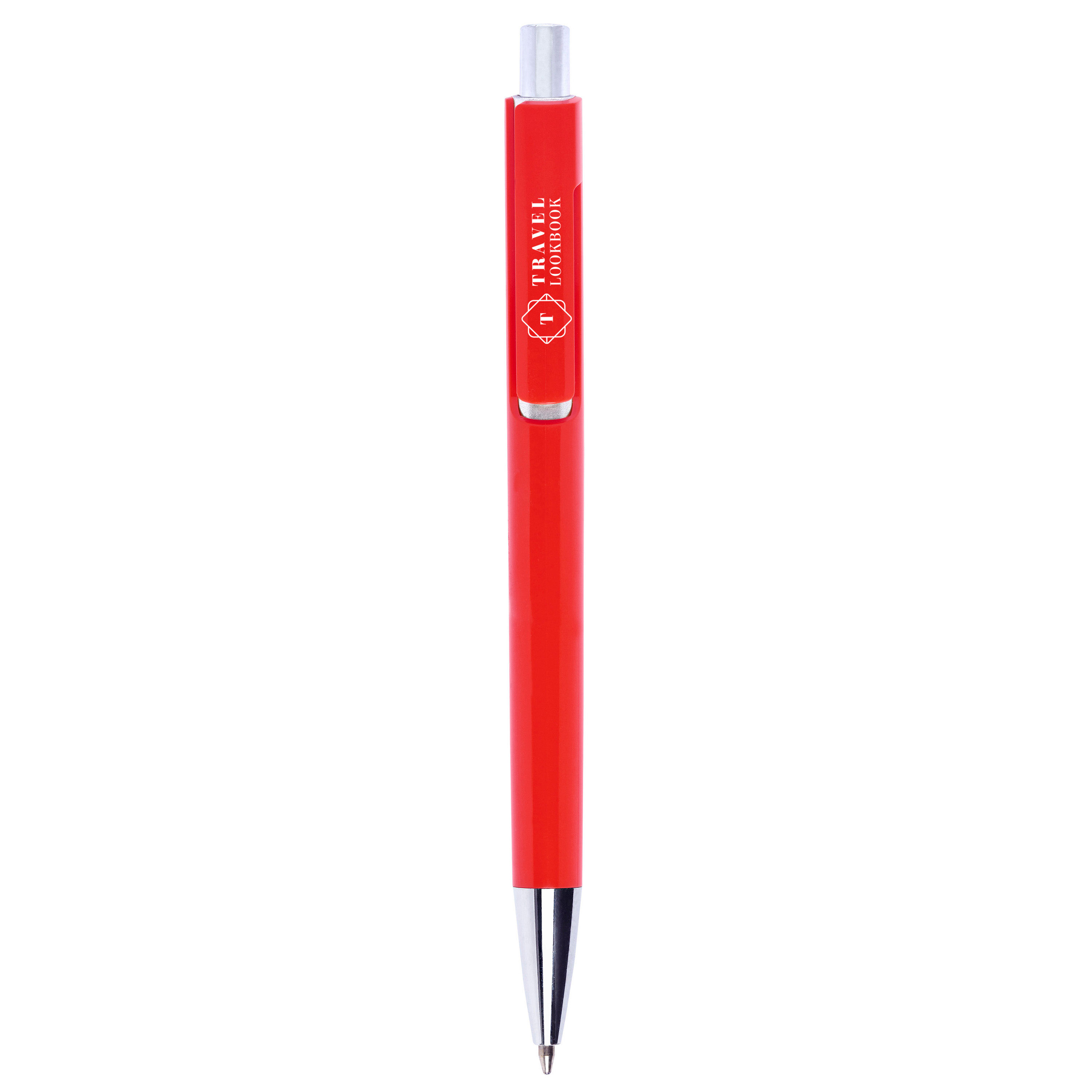 Plástico. Bolígrafo con cuerpo de color. Clip innovador. Puntera y pulsador con detalles color plata.
